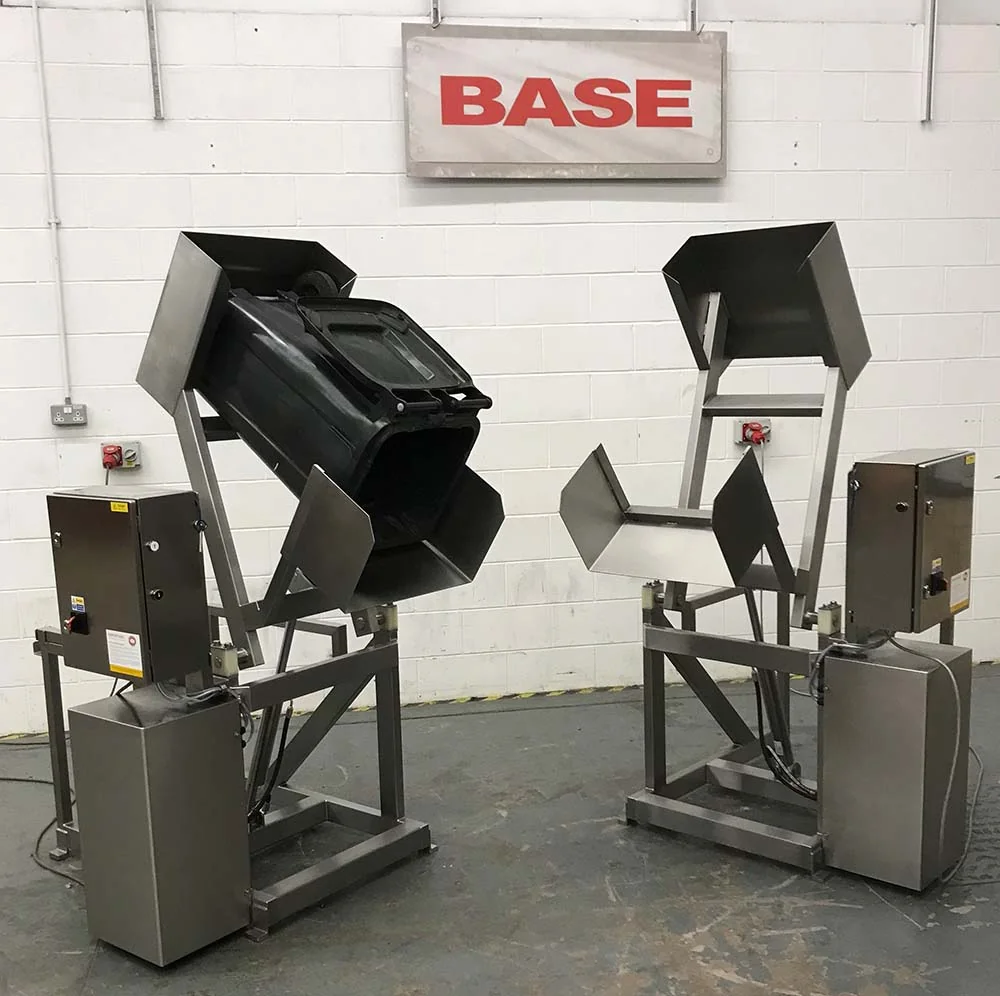 BTH/250/1000/B Hydraulic 120 Litre Wheelie Bin DumperThis 120 Litre Wheelie Bin Dumper is designed to lift and tip a standard 120 Litre Wheelie Bin at a discharge height of 1000mm and had a Safe Working Load of 250 Kgs. The Wheelie Bin Dumper is constructed from stainless steel and was designed to be bolted to the floor or welded to the deck if preferred. This Wheelie Bin Dumper is powered via a hydraulic powerpack and tips the containers by the extension of a hydraulic cylinder to an angle of 30 degrees past the horizontal. The hydraulic cylinder is fitted with a safety check valve such that even in the unlikely event of a hydraulic hose failure, the raised bin will not fall to the floor. 120 Litre Wheelie Bin Dumper Electrical ControlThis 120 Litre Wheelie Bin Dumper was fitted with an IP65 Control Panel mounted on the main frame at a convenient position to give good maintenance access under the Provision and Use of Work Equipment Regulation 1998 (PUWER). The unguarded 120 Litre Wheelie Bin Dumper operates on a ‘hold to run’ principle such that the ‘Up’ or ‘Down’ pushbuttons must be held for the Tipper to operate. As soon as either button is released, the Tipper will stop. The control panel has a volt free pair of contacts which can be used to connect a ‘Call to Run’ signal if required. |