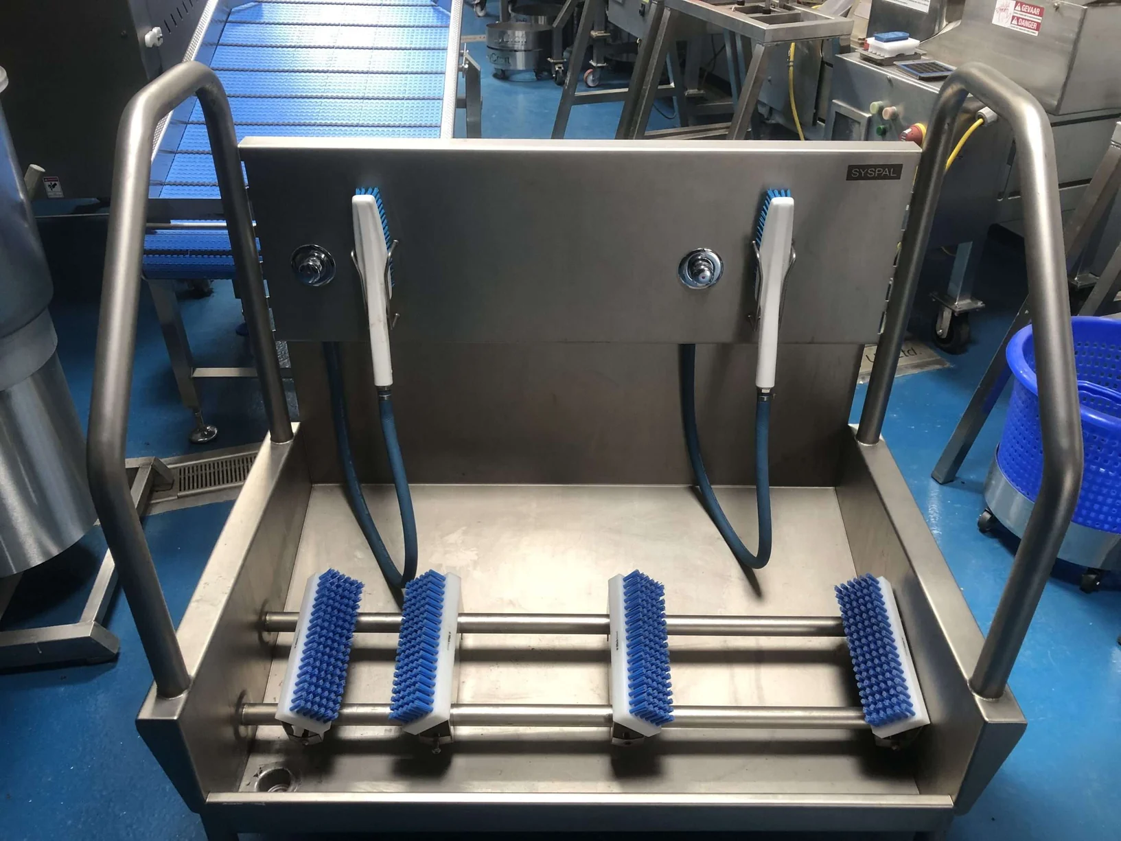 An easy to use manual boot washer suitable for use in any hygienic environment.