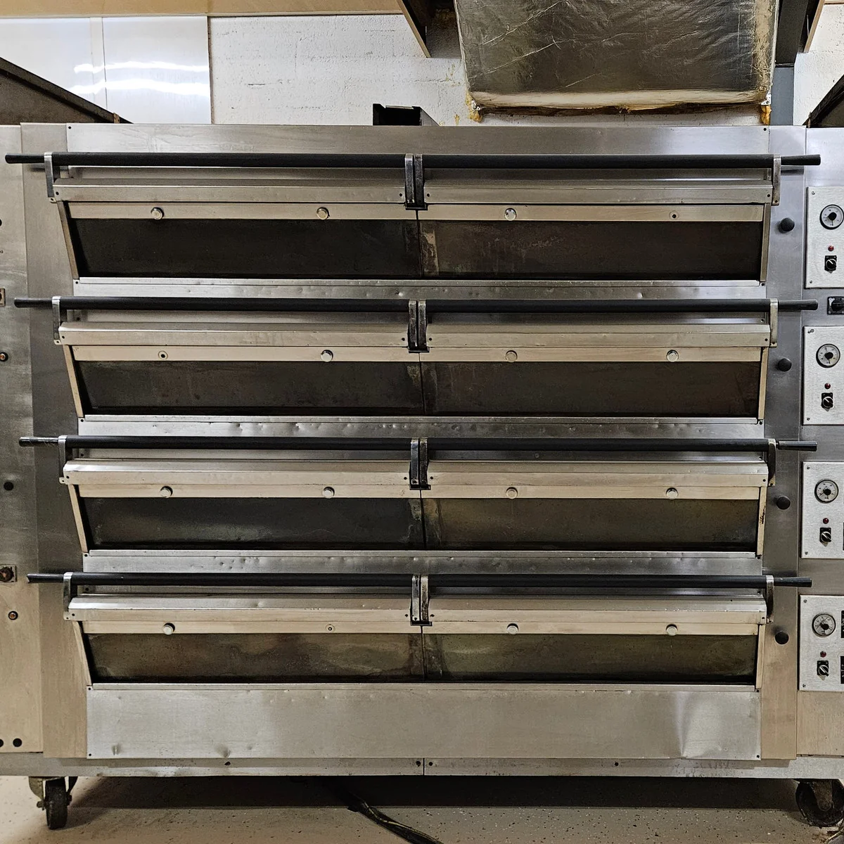 🗒️Notes: 4 decks with 8 trays per deck (32 trays total). Stainless steel, individual deck controls, heavy-duty commercial bakery use.