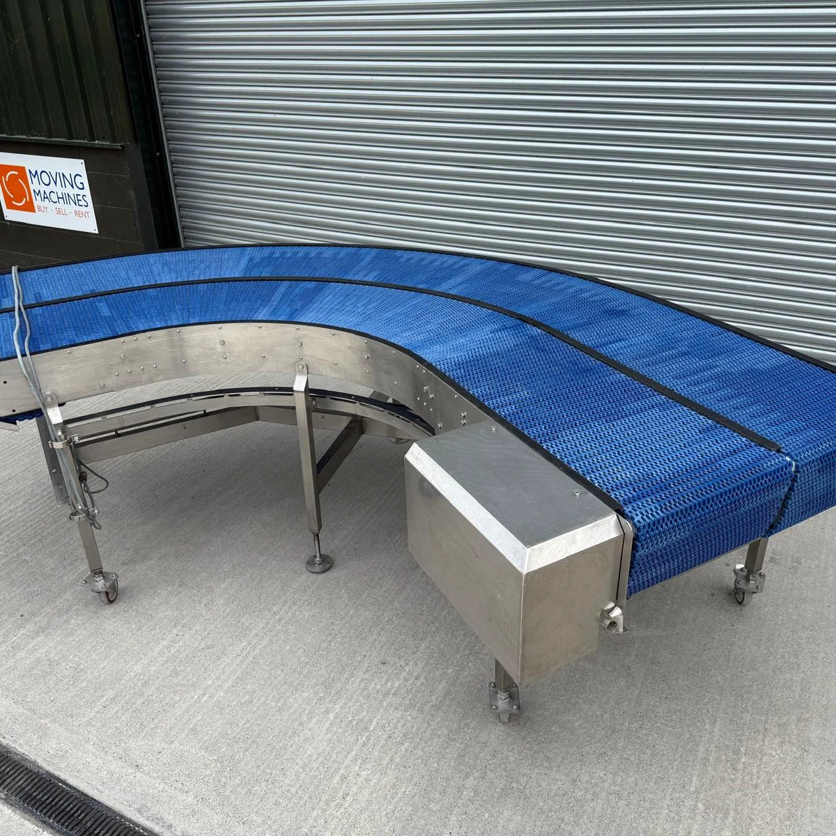 1 x 90 degree conveyor belt on stainless steel stand with wheels.