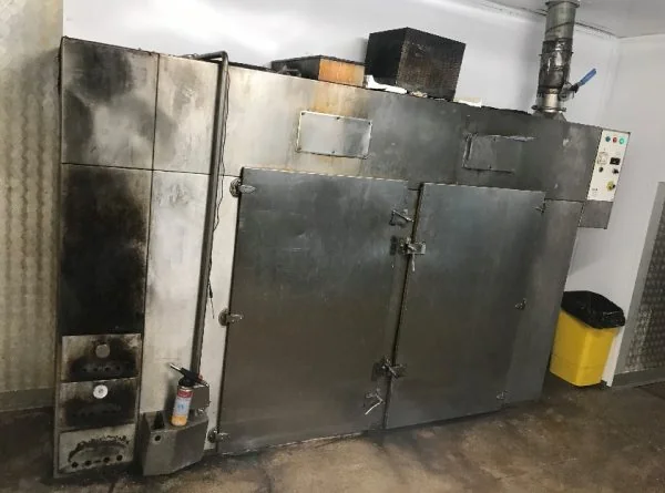 Feature: Smoking Kiln Make: Afos Model: Double Maxi Feature: Twin trolley capacity, approx. 127kg per cycle Feature: Hot and cold smoke Feature: Complete with 2 trolleys and racks Feature: Upgraded controls, brand new motor just fitted by Afos Feature: Built in smoke drawers Feature: Removed as one piece, ready to go!