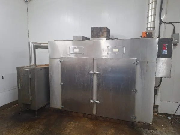 Feature: Smoking Kiln Make: Afos Model: Double Maxi Feature: Complete with Automatic Smoke Producer (ASP) Feature: 2 Trolley capacity (127kg per cycle) Feature: Hot and cold smoke Feature: Well maintained and serviced, with update control unit.