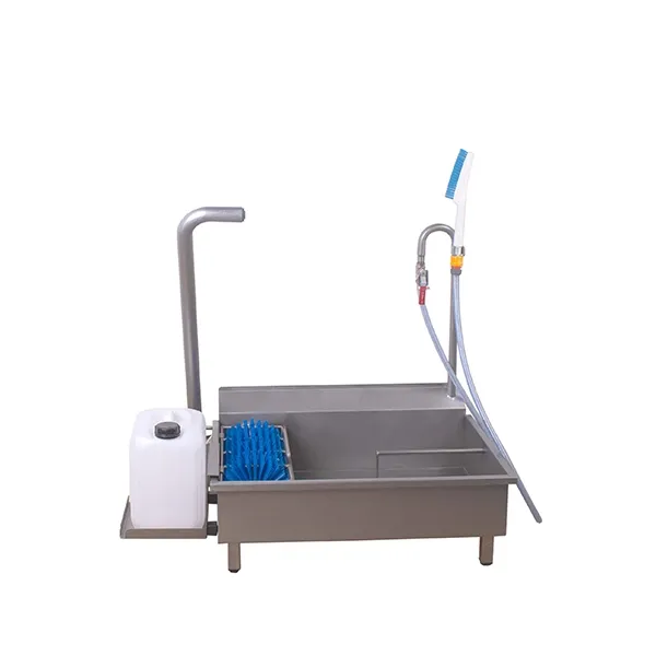 An automatic sole washer with handheld brush for the cleaning of footwear.