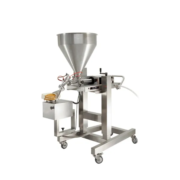 A volumetric stainless steel depositor, specifically designed for cake production.