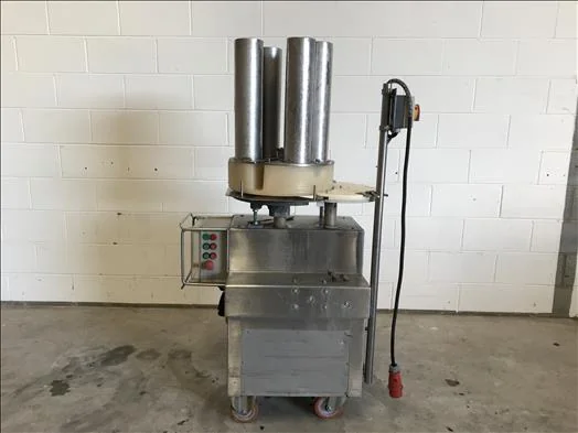 Power cleaver / slicer Stainless frame, six product chutes on turntable, with stainless circular blade for slicing, ideal for slicing salami / pepperoni etc