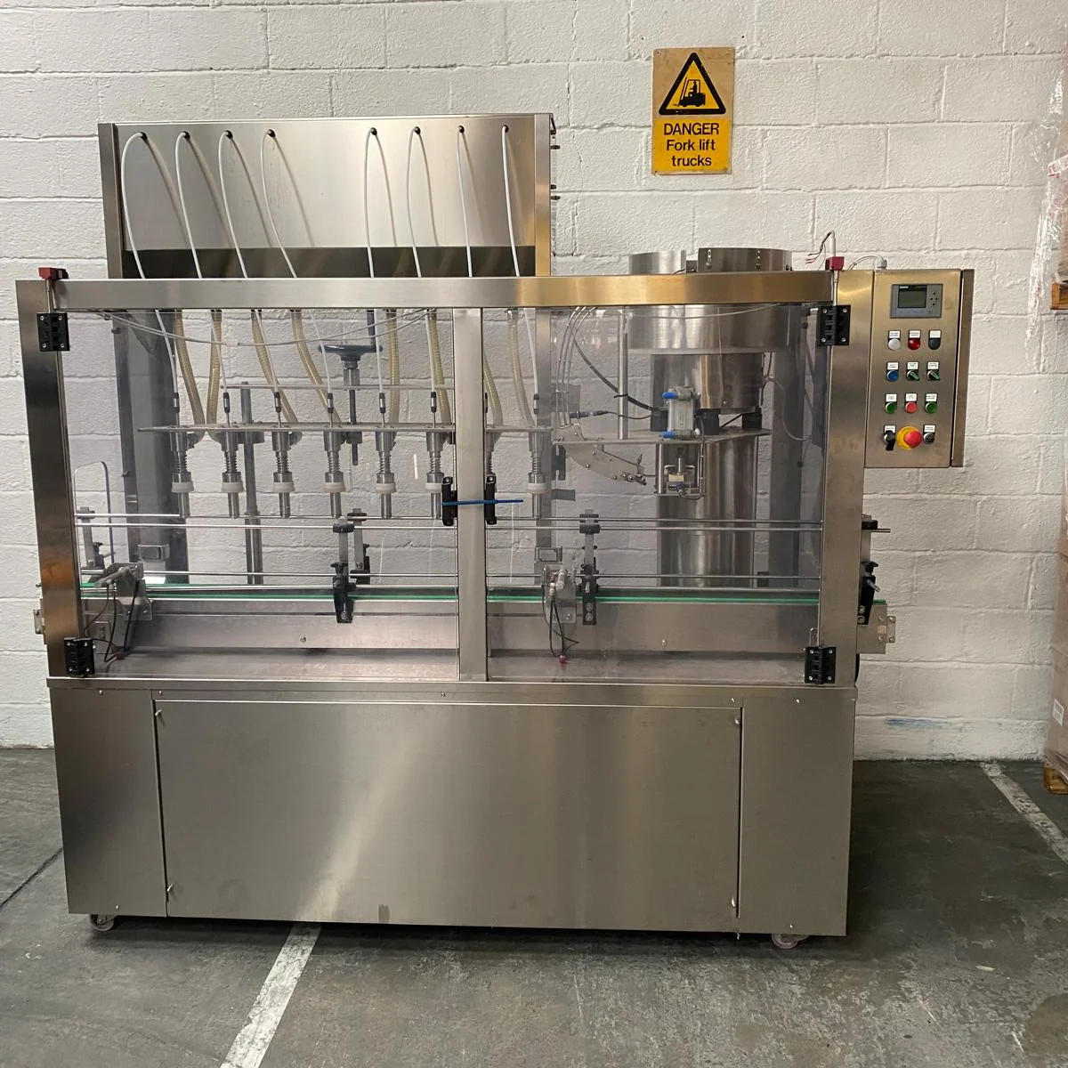 1 x Canellitech Srl automatic inline monoblock filling and crown capping machine for 5L bottles supplied with infeed and outfeed conveyors. Was used for filling 5L bottles and applying push-on caps.