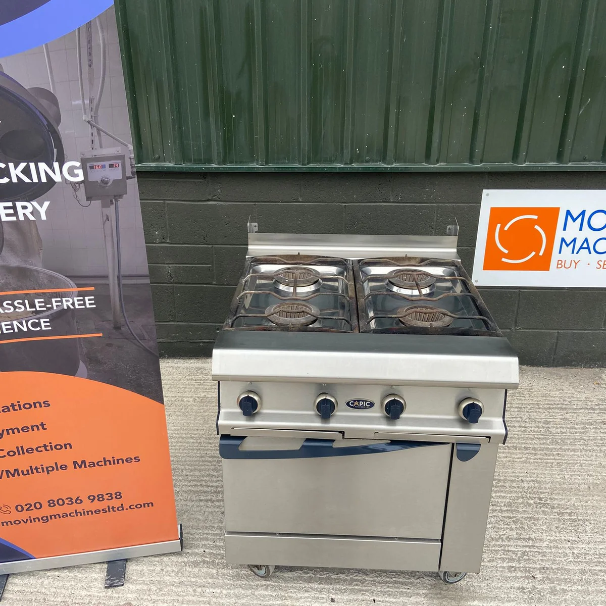 This unit is a CAPIC commercial gas range with oven, designed for heavy-duty use in professional kitchens such as restaurants, hotels, or catering facilities.