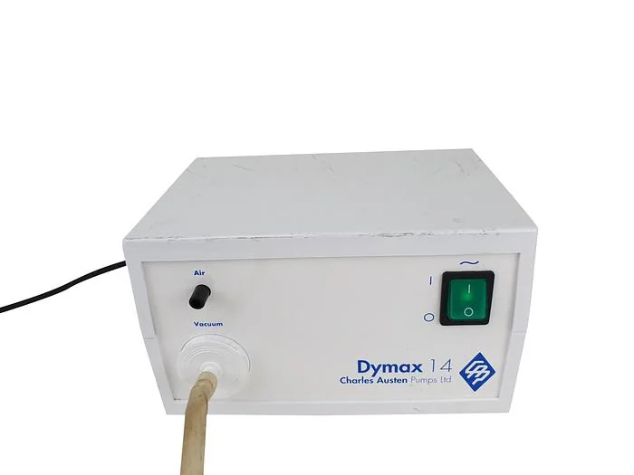 This listing is for a Charles Austen Pump Dymax 14 Diaphram Specifications Maximum Flow, l/min - 14 Maximum Pressure - 2.0 bar / 29.0 psi Maximum Vacuum, mbar - 240 Voltage Options - 230V AC (50hz) 110V AC (50/60hz), 230V AC (50hz) Dims, L x W x H, mm - 210 x 125 x 151