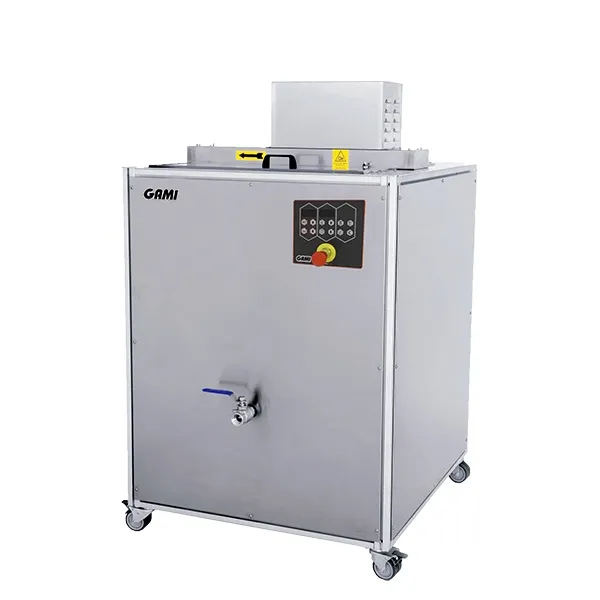 GAMI melting tanks are designed to melt large quantities of chocolate which is then used to feed tempering or enrobing machines. Inside the tank, built in AISI 304 steel, a mixer keeps the chocolate fluid and homogeneous. In order to preserve the organoleptic properties of the chocolate, the heating is entrusted to a bain-marie system, controlled by a thermoregulator. The tanks can be equipped with a system to transport the chocolate to the machines for which they are intended (TS50C / TS120 C / TS250C / TS300C) using a screw conveyor and stainless steel pipes with a heated jacket.