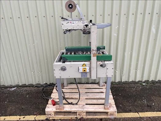 Top and bottom case taper, side grip belts, max box width 450mm, max box height 400mm, with infeed and outfeed roller conveyor, 3ph