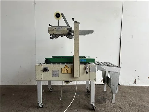 Top and bottom case taper, side grip belts, max box width 450mm, max box height 450mm, with roller infeed and outfeed conveyor, 3Ph