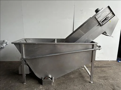 DTB Bucket elevator washing conveyor Stainless, bucket elevator conveyor, site inside a 500L stainless tank with recirculation pump, previously used for washing olives, elevates to 1800,, belt width 250mm, overall length of system 2700mm, two in stock, 3Ph