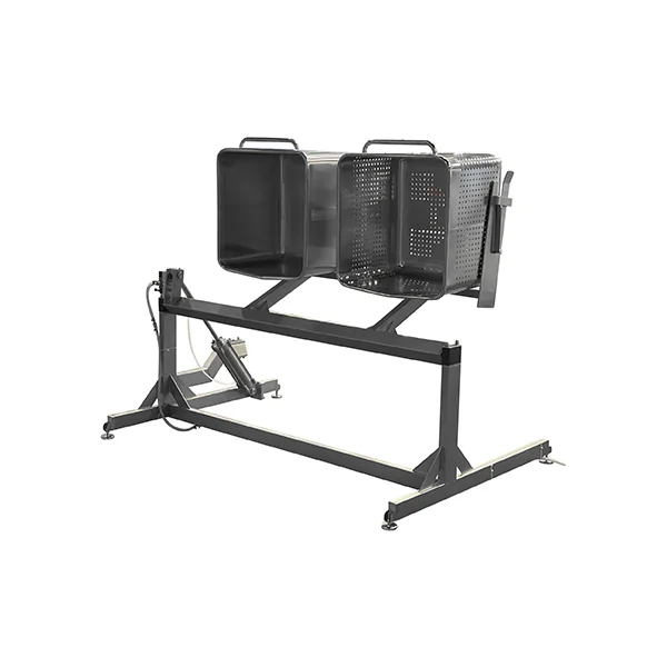 The unit lifts dump buggies into a horizontal position to assist in cleaning inside and underneath the buggy.