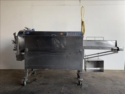Eillert Belt slicer G4400 VS Stainless frame, ideal for cutting fruit and vegetables, variable speed for cutting thickness, belt width 250mm, three winged knife and a series of blades for cutting leafy vegetables, overall length 2700mm, 550Kgs, 3Ph