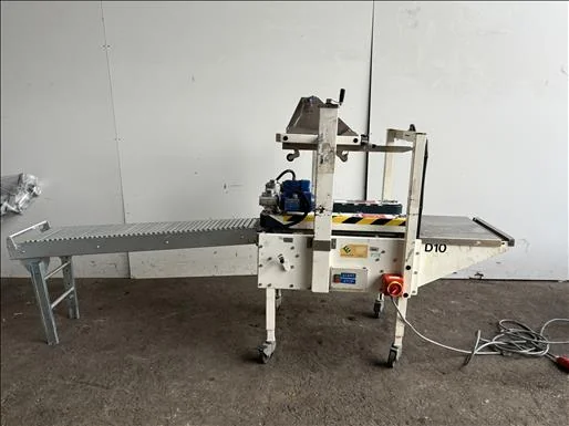 Endoline 605 case taper, Top and bottom case taper, side grip belts, max box width 400mm x max box height 450mm, with roller conveyor outfeed, mobile, 3Ph