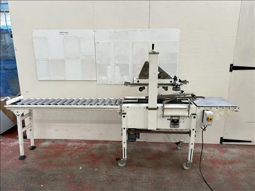 Endoline 710 case taper, top and bottom taper, bottom grip belts, max box with 400mm, max box height 500mm, with roller conveyor outfeed, mobile, 1ph