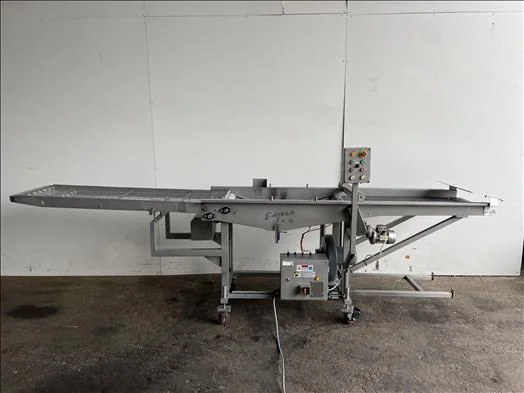 Expro Tempura machine, 2011, stainless, designed for coating products with liquid batter, ideal for products such as chicken nuggets, hamburger, schnitzel and more, variable speed, with blower for blowing surplus batter, overall length 4100mm, stainless mesh belt width 600mm, mobile, 3Ph
