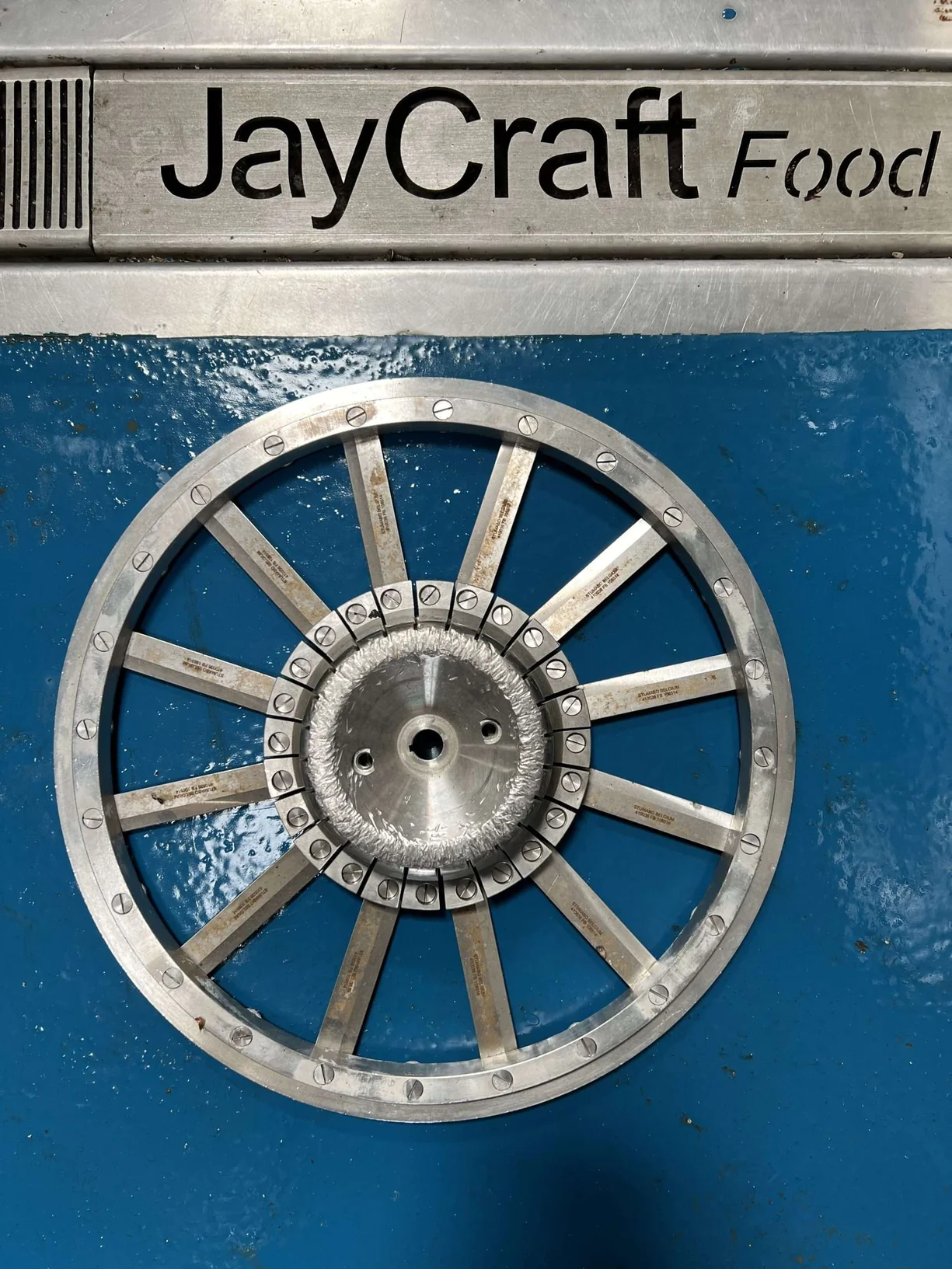 Used FAM slicing wheel made from stainless steel, this particular slicing wheel is fitted with 12 knives. Please contact us for mored detailed specifications.