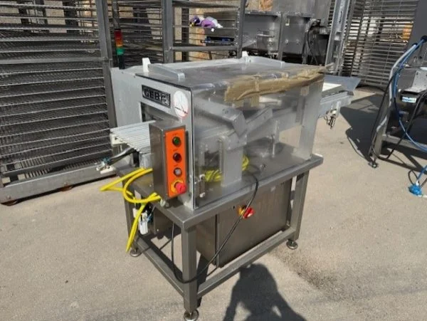 Feature: Salmon Slicer Make: Geba Model: WSM75 E Feature: Built 1998 Feature: Single lane D cut slicer Feature: Adjustable slicer angle and slice thickness Feature: Requires air supply Feature: Overhauled approx 4 years ago Feature: Good working order. Feature: Will be supplied with a new or repair perspex cover.