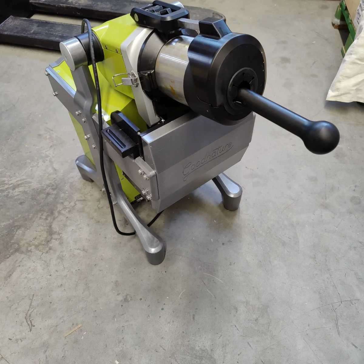 1 x Goodnature Inc. juicer. The juicer shreds vegetables, fruit and root vegetables and hydraulically presses them into juice (cold-pressed juice) without heating. Suitable for continuous use (professional kitchens, smoothie bars, etc.) without risk of overheating.