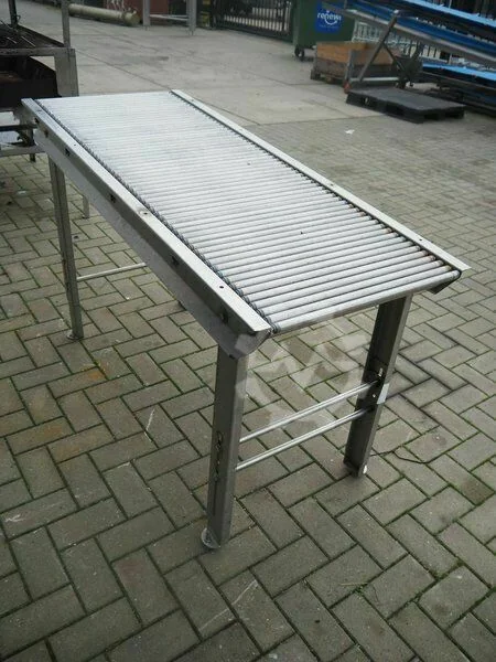 Gravity Roller ConveyorStainless steel frameStainless steel rollersRoller width: 530 mmHeight adjustable legsTotal dimensions: 1500 mm x 630 mm
