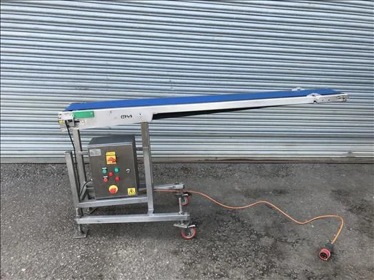 Stainless conveyor, variable speed, belt dimensions 1900mm x 200mm, mobile, 3Ph