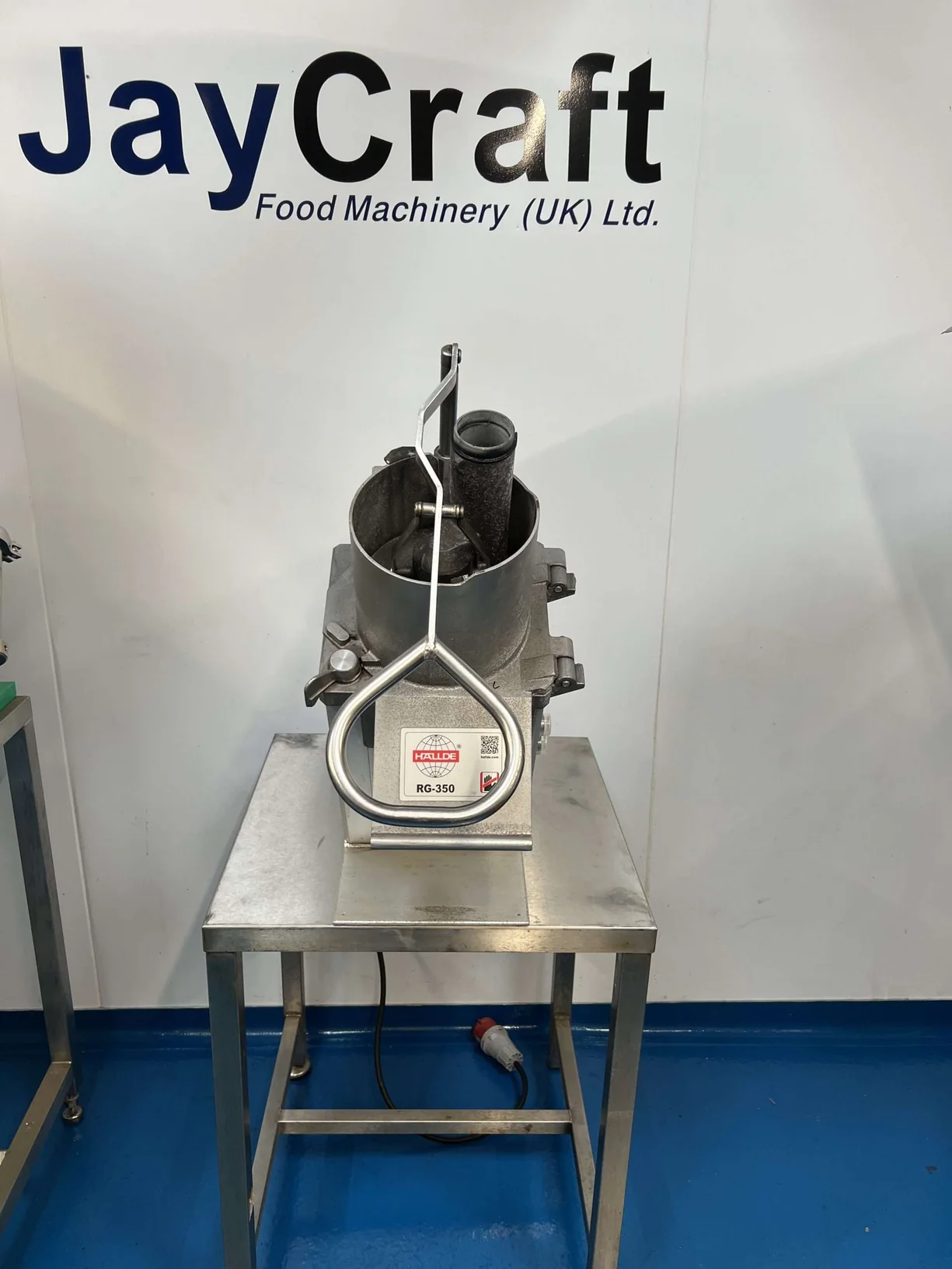 Used Hallde RG 350 for sale. The RG 350 is predominantly of aluminium construction. It is possible to slice, dice, shred, grate, julienne and waffle with this machine and will process fruit, vegetables, cheese, nuts and more. With its small design its ideal for prep rooms with limited space and can be mounted on a small prep table.