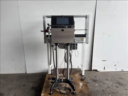 Hitachi RX2-SD160W ink jet printer, 2007, Stainless inkjet printer, touch screen control, with Pavan roller conveyor 1000mm x 170mm, 1Ph