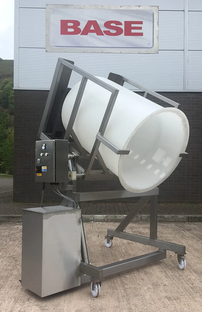 DTH/200/850/B Hydraulic Drum TipperThis Hydraulic Drum Tipper is designed to lift and tip your 500 Litre drum at a height of 850mm and would have a Safe Working Load of 200 Kgs. The Hydraulic Drum Tipper is constructed from Grade 304 stainless steel, is a fully TIG welded construction throughout and would be bolted to the floor. This Hydraulic Drum Tipper would be powered via a hydraulic power-pack and would tip the bin by the extension of a pair of stainless steel hydraulic cylinders to a maximum angle of 30 degrees past the horizontal. The hydraulic cylinders are fitted with a safety check valve such that even in the unlikely event of a hydraulic hose failure, the raised bin will not fall to the floor. Hydraulic Drum Tipper Electrical ControlThis Hydraulic Drum Tipper is fitted with an IP65 Stainless Steel Control Panel which is mounted on the main column at a convenient position to give good maintenance access under the Provision and Use of Work Equipment Regulation 1998 (PUWER). The unguarded Hydraulic Drum Tipper has ‘dead man’s handle’ control such that the ‘Up’ or ‘Down’ pushbuttons must be held for the Hydraulic Drum Tipper to operate. As soon as the button is released, the Hydraulic Drum Tipper will stop. The control panel has the facility for a ‘Call to Run’ signal to be connected if required. |