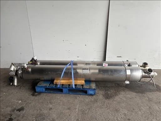 2 x IFT Shell and tube heat exchanger, 2017, Stainless, two in stock, shell and tube heat exchanger, Shell length 2700mm x 150mm diameter, see plate for more spec