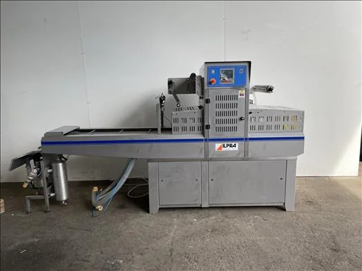 Stainless automatic inline tray sealer, previously used for sealing 250mm diameter tubs, two filling heads on infeed section, with HMI screen controls, 3Ph