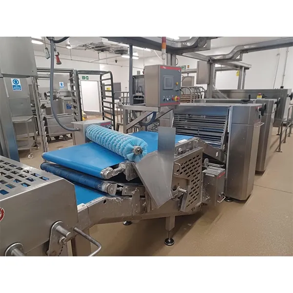 Rondo industrial smart line, 90deg feeder, 8m x 740mm make up line with hi speed guillotine, scrap removal, comes with industrial tray loader with cross tray feed conveyor.
