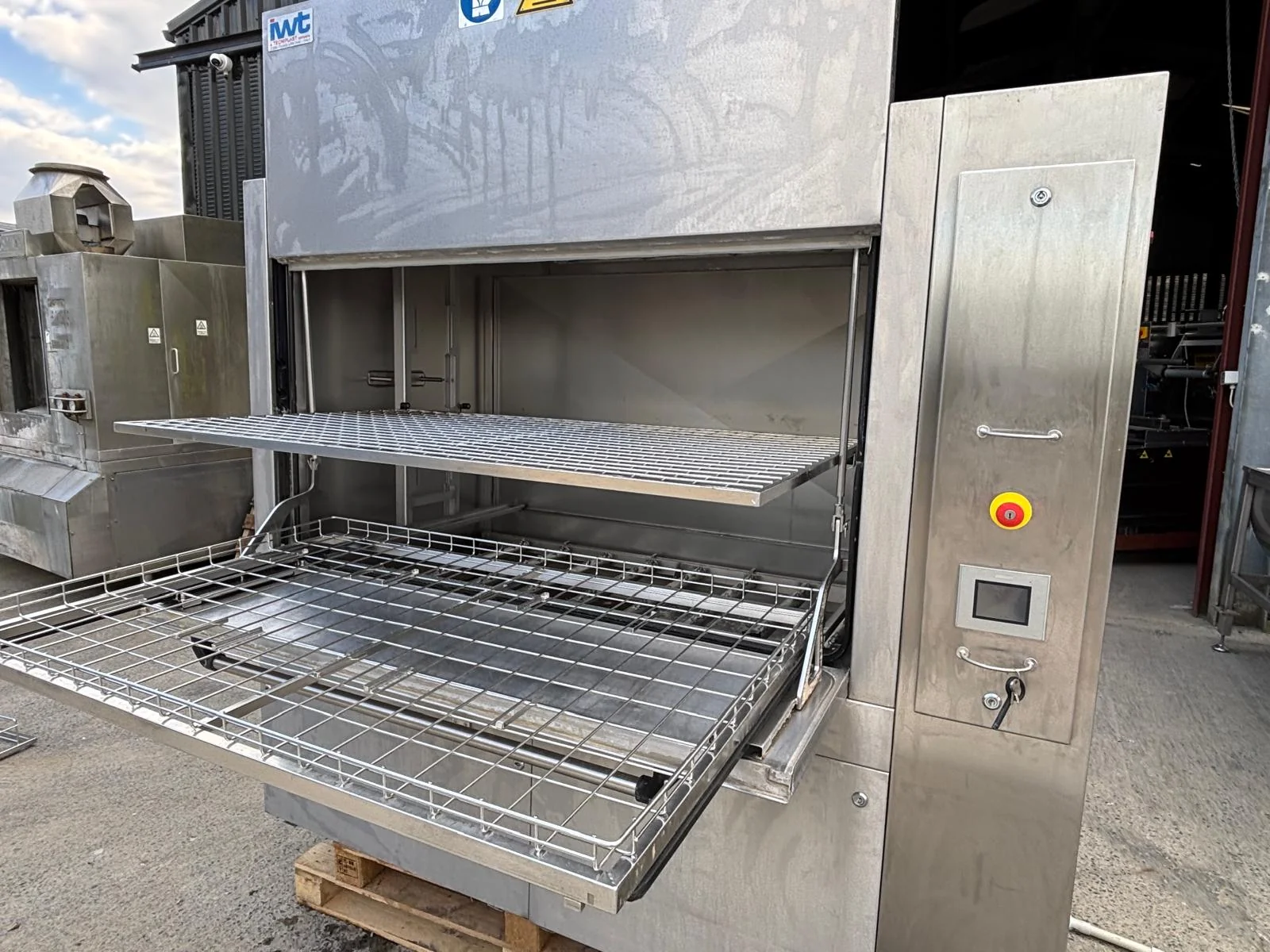 Also one mobile rack on castors for unloading of washed product on removable racks