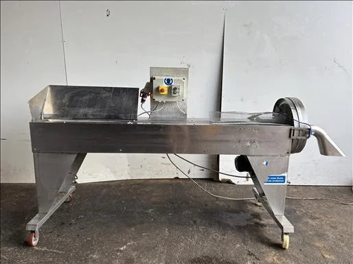Jaycraft Belt slicer, Stainless belt slicer, belt width 100mm, previously used for cutting carrots, overall length 2900mm, with a spare new belt, mobile, 3Ph