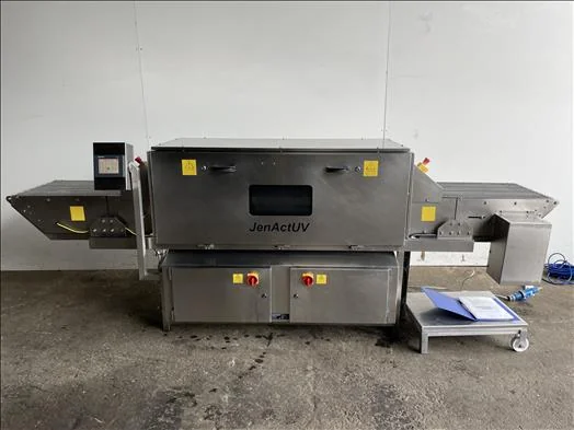 Stainless, variable speed conveyor with UV disinfection zone, the UV disinfection zone consists of two arrays of UV lamps, the top array is mounted above the wire belt and bottom array of lamps is mounted below the wire facing upwards. This is set up to achieve disinfection on all sides of a product placed on the conveyor, HMI touch screen controls, belt dimensions 3500mm x 500mm, stainless wire mesh belt, with manual, 1Ph
