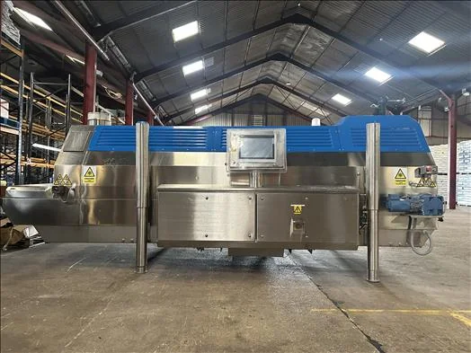 Linde Cryoline MT1250 Freezing tunnel, Serial: 5-199, 2016, Linde CRYOLINE MT 1250 Cryogen/Nitrogen Tunnel Freezer, a top-of-the-line freezing solution for your industrial needs. This machine boasts a cooling capacity of 100 kW/29.41 tons, ensuring efficient and rapid freezing of your products. The fully stainless steel construction, including a fine stainless steel mesh belt, guarantees durability and hygiene compliance. With a net belt width of 1250 mm and a freezing belt length of 4000 mm, this freezer can accommodate a wide range of products with a maximum height of 100 mm. Equipped with 6 internal high-speed fans that are adjustable, you have full control over the freezing process. The holding time can be set between 0.5 and 20 minutes, providing flexibility based on your specific requirements. The stainless steel switch-board cabinet features a Siemens PLC and HMI Simatic touchscreen for easy operation and monitoring. This Cryoline MT 1250 Cooling Tunnel, manufactured in 2016, o