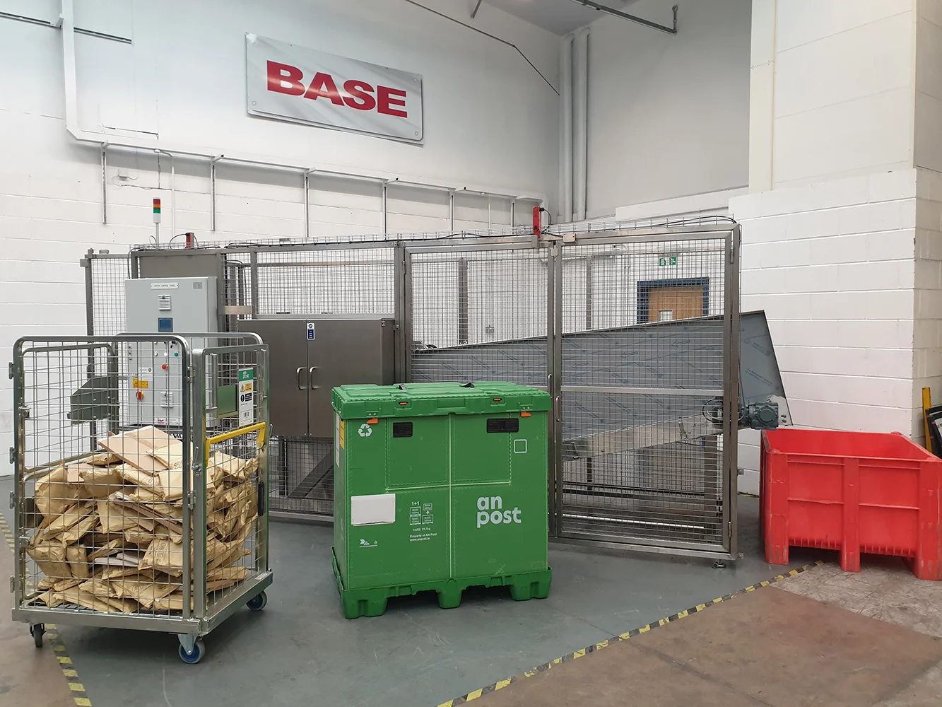BTM/400/1000/B/G Mail Induction SystemThis Mail Induction System is designed to lift and tip a Mail Container at a discharge height of 1000mm. The Mail Induction System is a fully welded steel construction and is designed to be bolted to the floor. This Mail Induction System would be powered via a Helical Bevel gearbox and would tip the Mail Container to an optimum tipping angle of 170 degrees. The Mail Container was loaded into lift frame and raised by rotation of the lifting carriage by the motor gearbox. As the Mail Container is tipped over to the full tip angle the mail and parcels are discharged into the conveyor hopper. The Mail Container would be securely retained in the lift carriage in the fully tipped position. Safety Guard to BS EN 14120:2015 Safety of Machinery GuardsThe safety guard is constructed from 40 x 40 x 3mm box section and 3mm wire, 40mm aperture weld mesh to meet the guidelines of BS EN 14120:2015 Safety of Machinery Guards. It encloses the Mail Induction System to a height of 2200mm on two sides, 1000mm at the tipping side with a pair of interlocked hinged guard doors on the fourth side. The guard doors are electrically and mechanically interlocked to prevent the Mail Induction System from operating if either door is open. Additionally, the guard doors can only be opened when the lift carriage is at the full down position to prevent access whilst a load is raised. Also included was additional guarding around the tipping area with an electrically interlocked safety guard door at the side of the conveyor. This allowed access to retrieve any parcels that may fall out at this position and also to allow access for cleaning and maintenance to take place. Mail Induction System Electrical ControlThe Mail Induction System is fitted with an IP65 Stainless Steel Control Panel which is mounted on the safety guard at a convenient position to give good maintenance access under the Provision and Use of Work Equipment Regulation 1998 (PUWER). The Tipper Control included an Inverter to allow for speed control and it uses a Rotary Position Sensor to stop at the full up and full down positions. It also uses Over Travel Proximity Sensors which are independent of the Rotary Sensor. The Control Panel is fitted with a PLC and HMI that allows features including:-