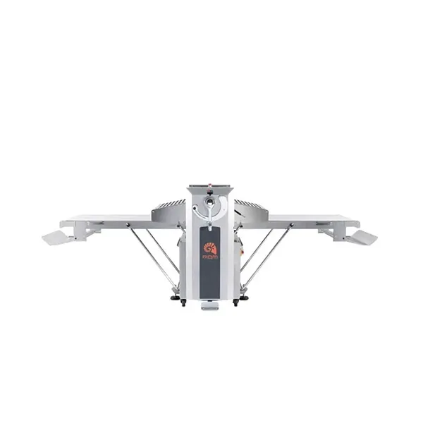 The machine is provided with under-tables surfaces and flour collection tray.
