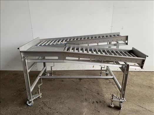 Stainless frame, stainless rollers 420mm width, feed height 1150mm, discharge height 900mm, total length 2000mm, side guides,