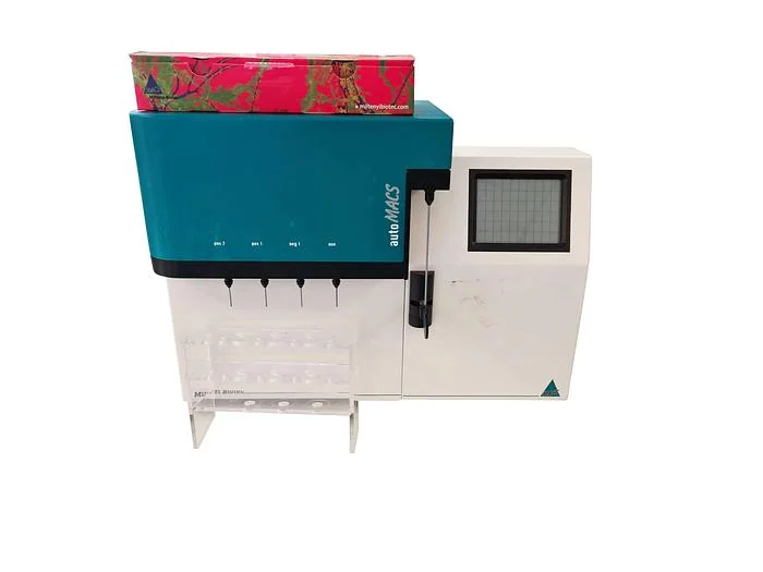 This listing is for a Miltenyi Biotec AutoMACS 003 The autoMACS Separator is a benchtop instrument for high-speed automated cell sorting. Employing the MACS Technology, the autoMACS Separator is designed for positive selection as well as depletion of magnetically labelled cells. The autoMACS Separator is operated with pre-set separation programs, thus, allowing optimization of cell sorting approaches according to cell abundance and the intensity of marker expression. The separated cells are immediately ready for experiments, cell analysis, or further subset sorting.