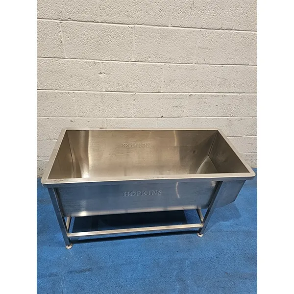 Hopkins Mobile Trough. Stainless steel. Dimensions – L: 50in (1270mm) x W: 22.4in (570mm) x H: 26.7in (680mm). In good used condition.