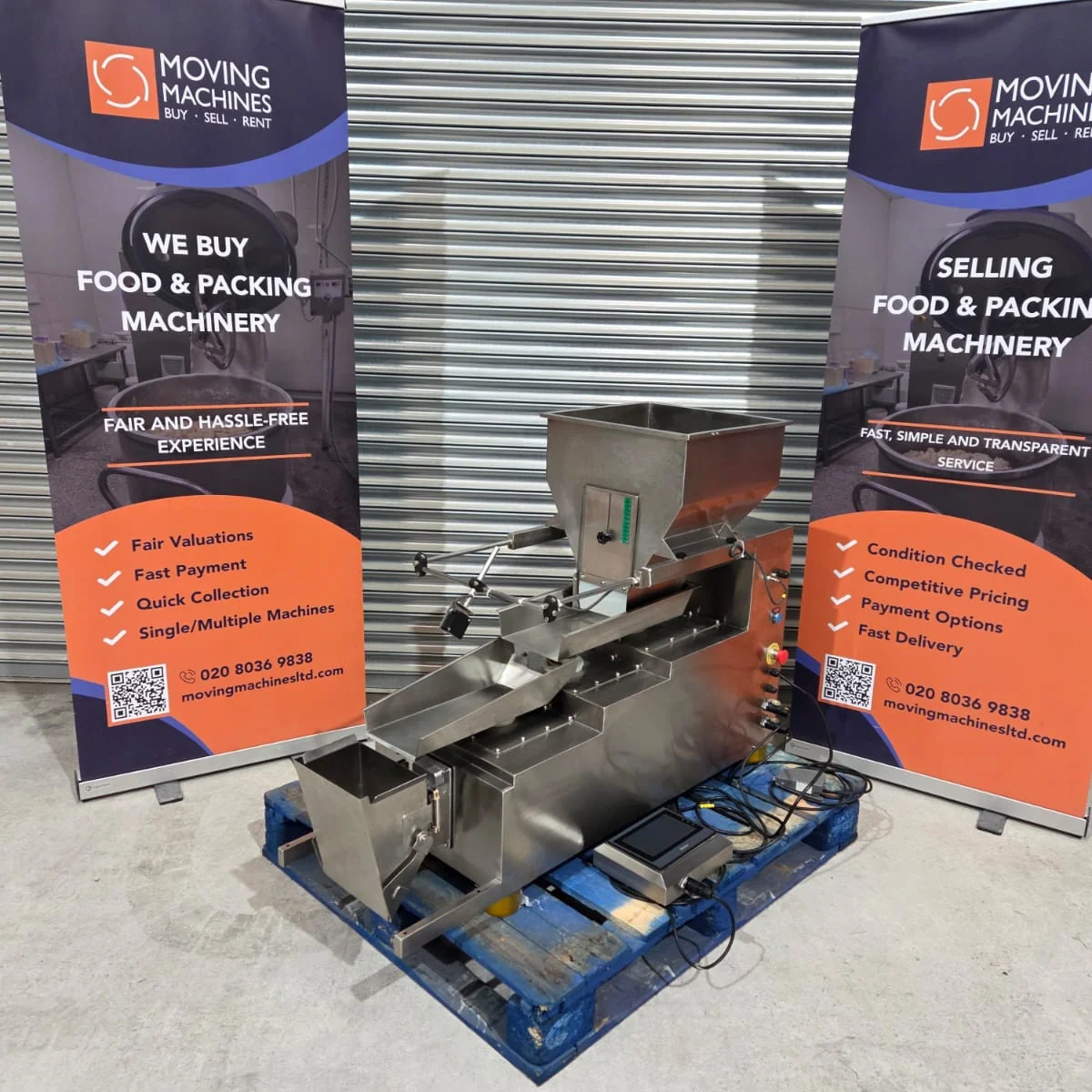 1 x Multipak Packaging Machinery single-head three-tier linear weigher with pneumatic foot pedal, smooth pans (for dry/solid products) and 7 inch HMI colour touch-screen control panel.