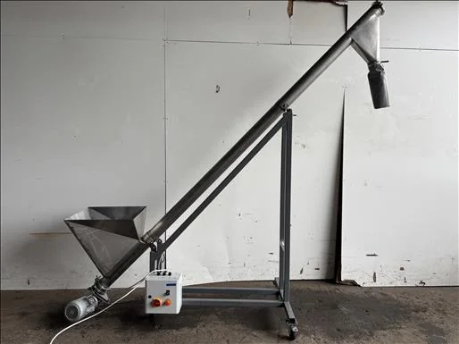 NNP Elevator screw conveyor, Stainless screw conveyor, elevates from 300mm to 2400mm, screw diameter 100mm, overall length 3000mm, mobile 3Ph