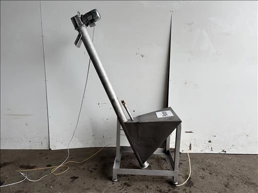 NNP elevator screw conveyor, Stainless, 100Kg hopper, elevates from 200mm to 1750mm, screw diameter 100mm, overall length 1350mm