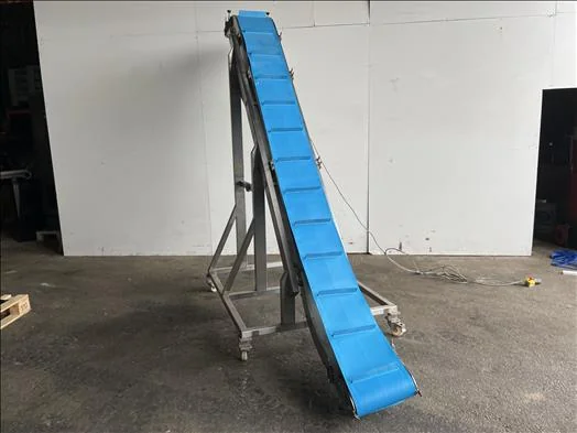 Flighted elevator conveyor Stainless frame, elevates from 300mm to 2700mm, belt width 350mm, mobile, 3Ph