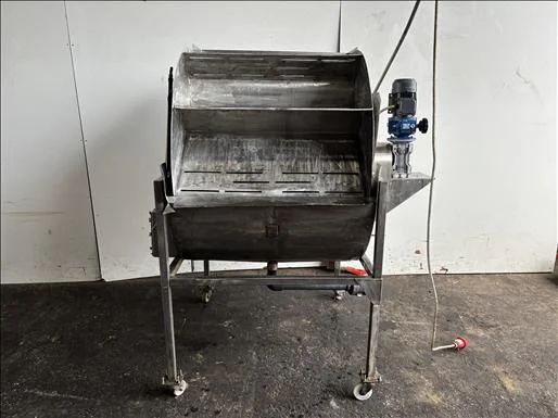NNP Rotary dip tank, Stainless rotary dip tank, variable speed, rotary drum length 900mm, rotary drum diameter 1100mm, central bottom drainage, previously used on fruit and veg, mobile, 3Ph