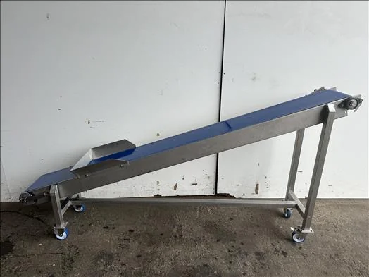Stainless conveyor, Stainless conveyor, belt dimensions 2500mm x 280mm, elevates from 300mm to 1200mm,