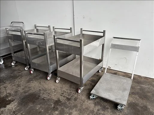 NNP Stainless trolleys, 15x stainless mobile trolleys, various sizes