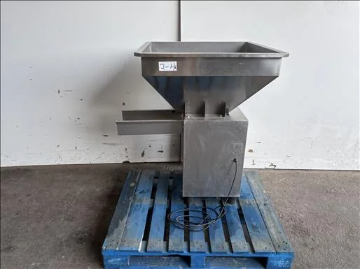 NNP Vibratory feeder, Stainless, vibratory conveyor feeder, 100Kg stainless hopper, discharge chute width 250mm, 1Ph