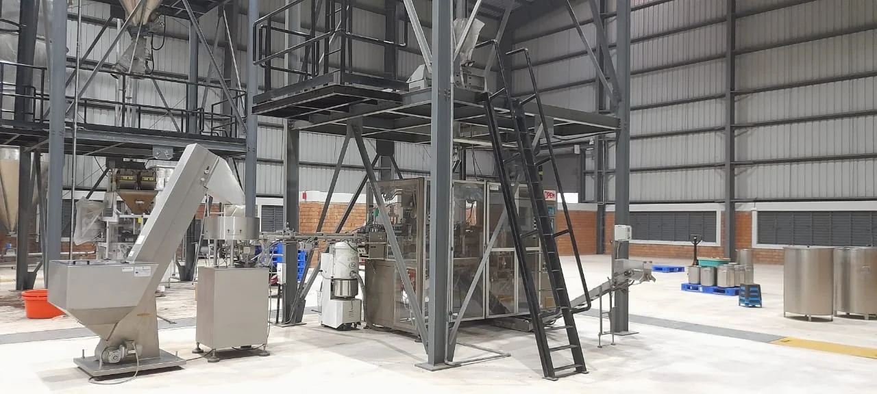 It comes complete with the following: Bulk Blank Capsule Hopper which feeds into the Capsule Sorter Capsule Sorter/Centrifugal Feeder correctly orientates the capsules which are then fed into the main OPEM machine. They are then conveyed through the machine, filled with ground coffee, tampered and sealed. The capsules are then conveyed into the integrated FFS Colibri packing section where they are individually packed into small pillowpack style bags. CFM Vacuum included to clean any surplus coffee grounds from the capsule prior to sealing. Above the OPEM sits the coffee dosing unit on the gantry. Gantry with steps for access is NOT included.